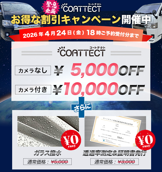 太陽の光を反射し輝くフロントガラスCOATTECT。