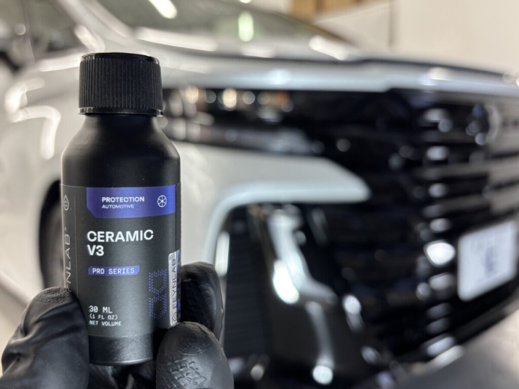 オーナー様と打ち合わせをした上で、ファインラボ セラミックVer.3を塗布しました。このコート剤は耐スリキズ性、耐酸性雨性、耐紫外線性の性能を持たせつつ疎水力が強めのコーティングです。ツルツルする手触り、クリア感が増す様な艶、コストパフォーマンスに優れたコーティングです。